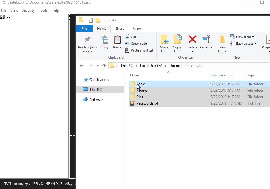 With the rise of online banking, cryptocurrencies and other digital transformation, it has become mandatory to backup sensitive files. Those file need to be easily accessible, securely stored and encrypted. But lightweight, portable, cross platform vault software are surprisingly hard to come by. Password protected archive works fine but they let room for file leakage since there is no convenient way of exploring the vault without extracting the whole content. Jsafebox was made to cover these shortfalls.