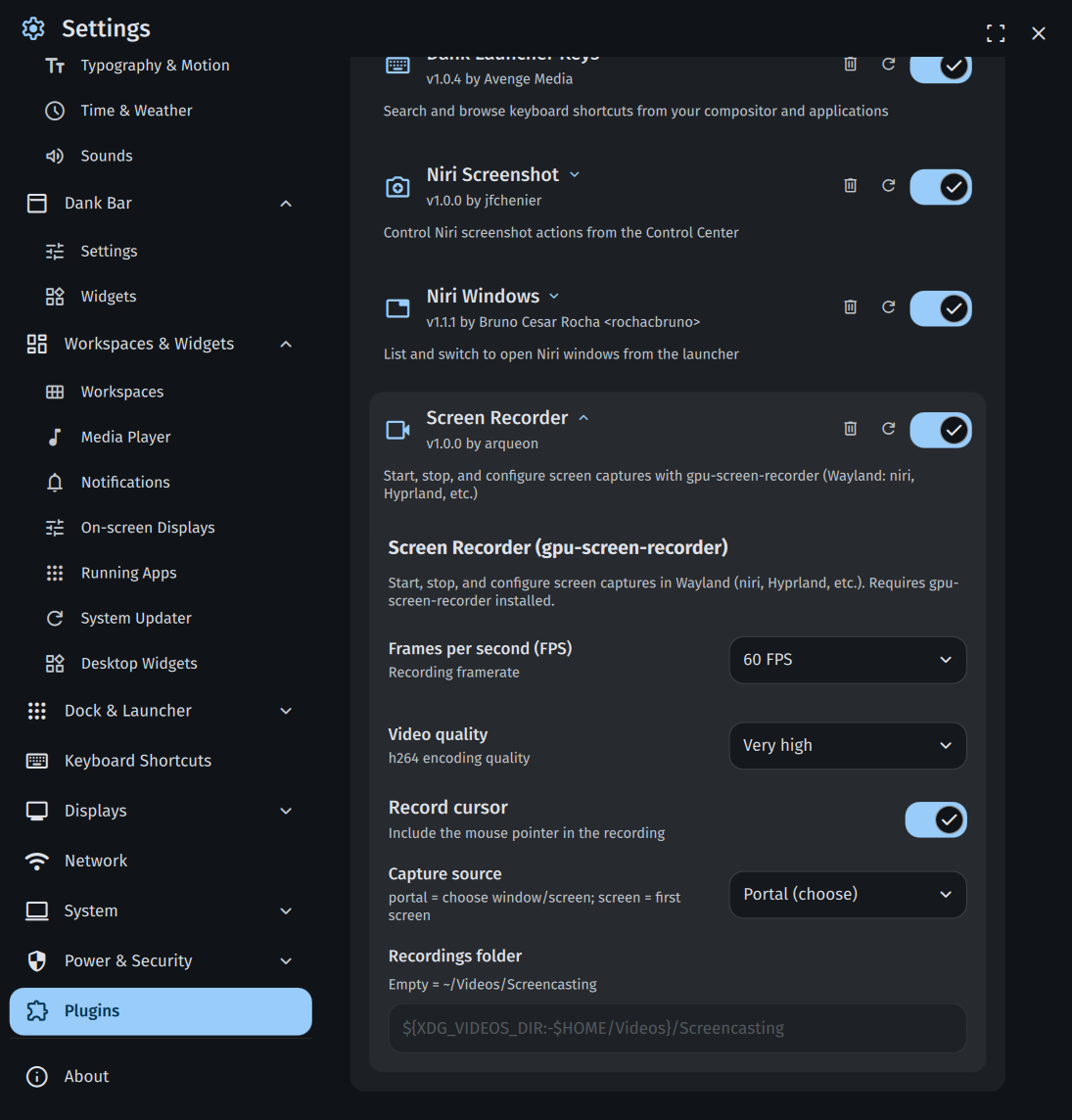 Some plugins are created by third-party developers and are not officially supported by the Dank Material Shell team. Use them at your own risk. In case of issues, please contact the plugin author directly.