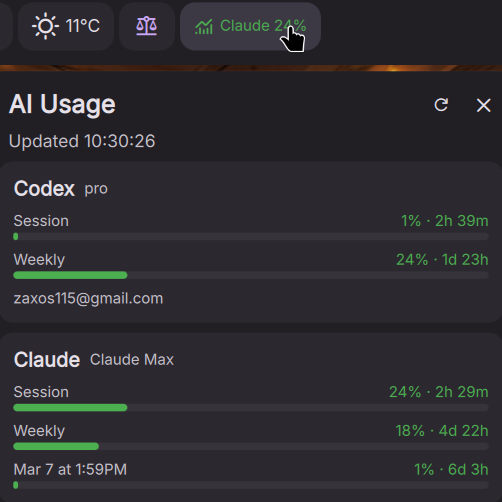 Monitor your Claude Code subscription usage with token tracking, rate limits, and daily activity charts