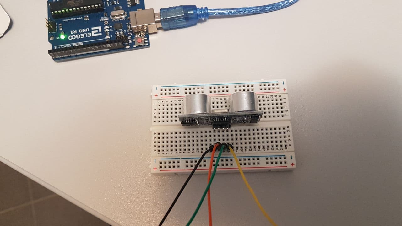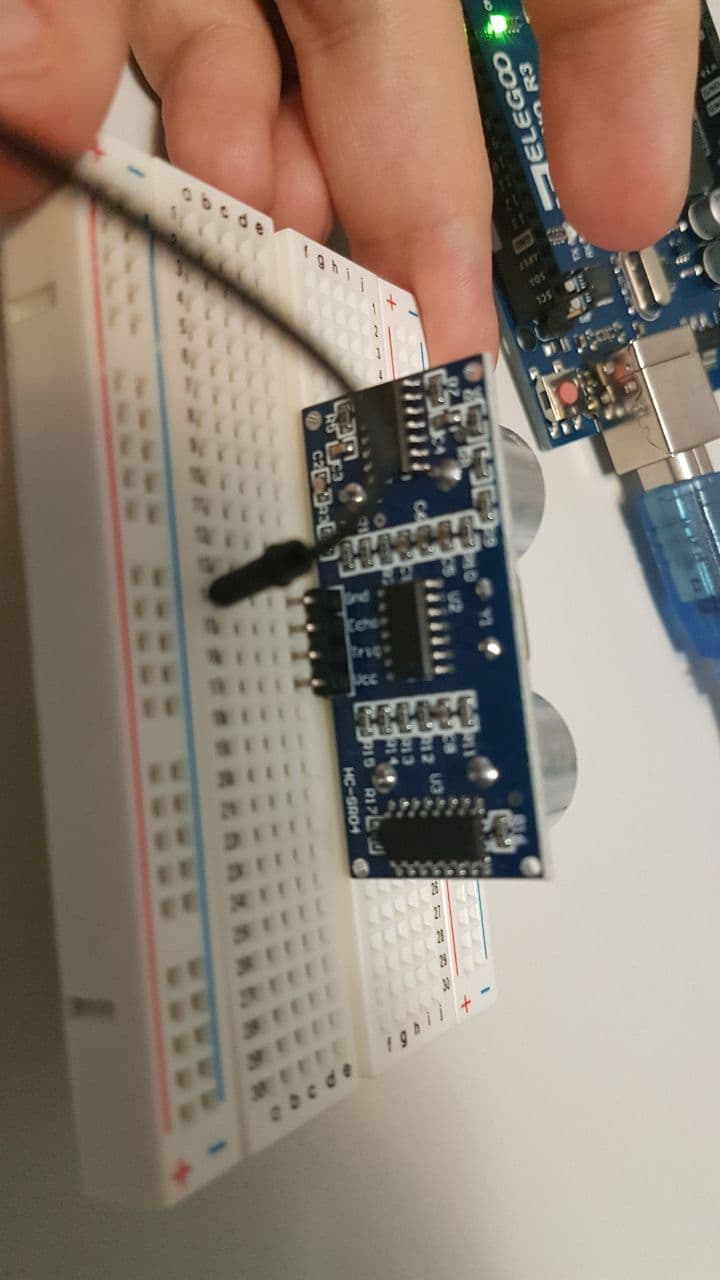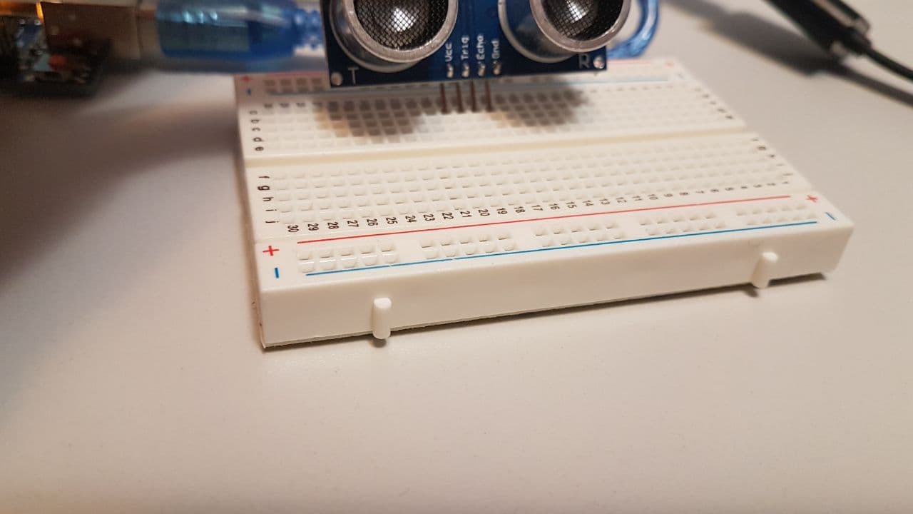 Ultraschall Abstandssensor in das Breadboard einstecken