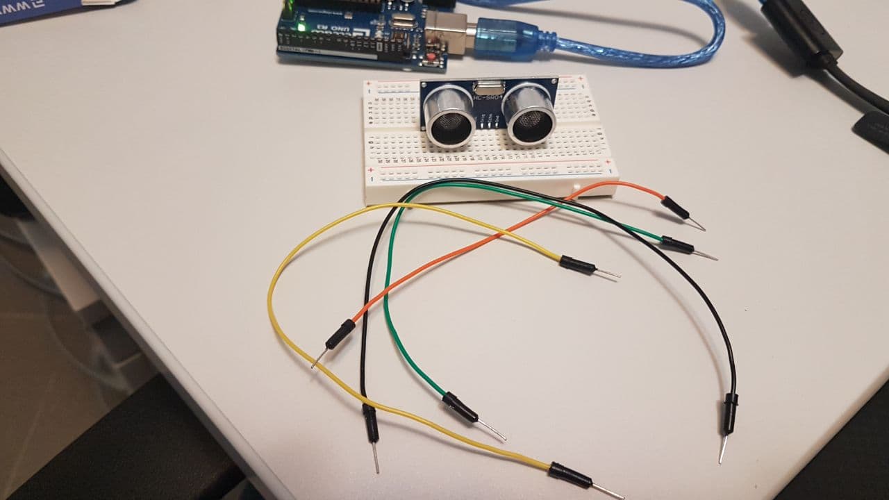 4 Jumperkabel raussuchen und den Ultraschallsensor mit dem Arduino verbinden