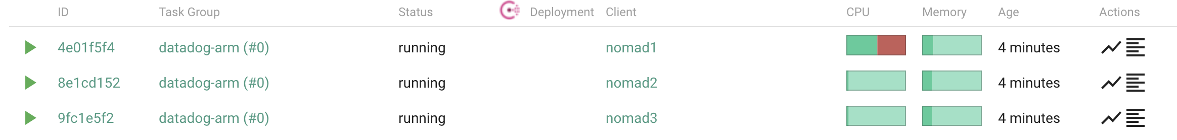 The install script [that works on rpi](https://docs.datadoghq.com/developers/faq/deploying-the-agent-on-raspberrypi/) Is horribly out of date (<v5). I just built and [pushed](https://hub.docker.com/r/myoung34/datadog-arm) an ARM builder using Gitlab on a [raspberry pi](https://github.com/myoung34/docker-dd-agent/blob/arm/.gitlab-ci.yml) and it worked without any issues. DD Dashboard  Nomad:  It would be awesome to get an upstream builder if possible.