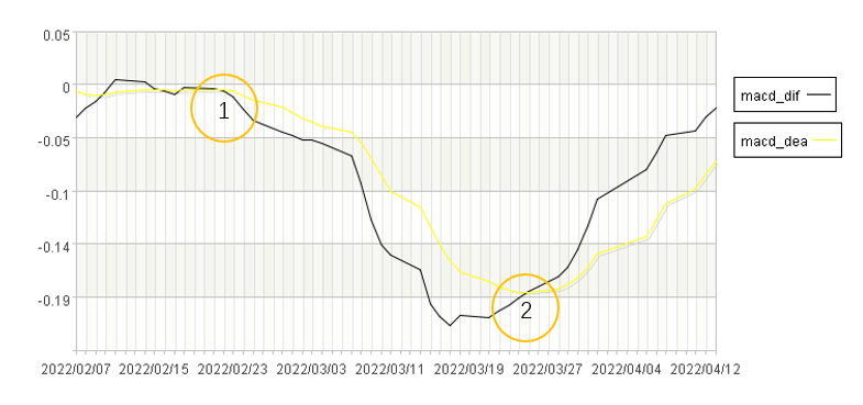 If the DIFF of a certain trading day’s previous day is less than the DEA, and the DIFF of the following day is greater than the DEA, then that trading day is called a golden cross.
