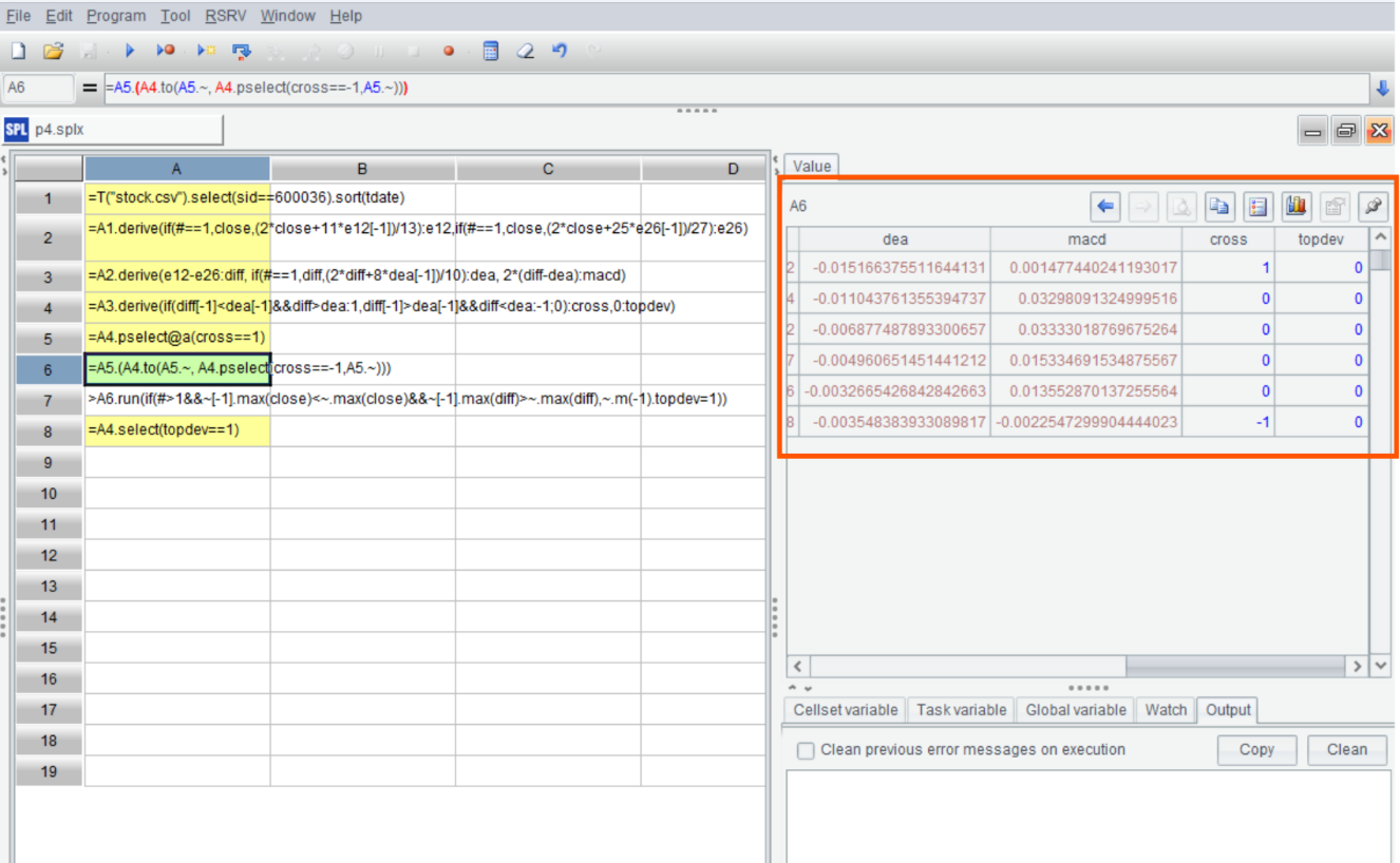 The SPL code for the previous task has obtained DIFF and DEA, and now we just need one more step to calculate the golden cross and death cross: