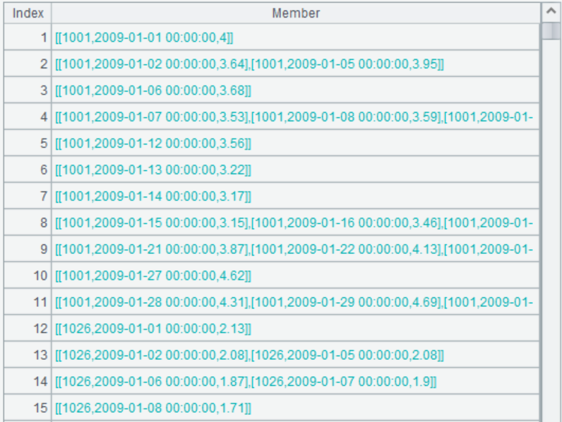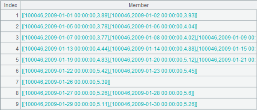Each member is a grouped subset consisting of consecutively rising stock records. Double-click the 3rd member, for example, and we can check its details: