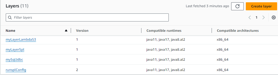 Layers are created in the similar way. Let’s take the layer myLayerLambdaS3 as an example to look at the process: