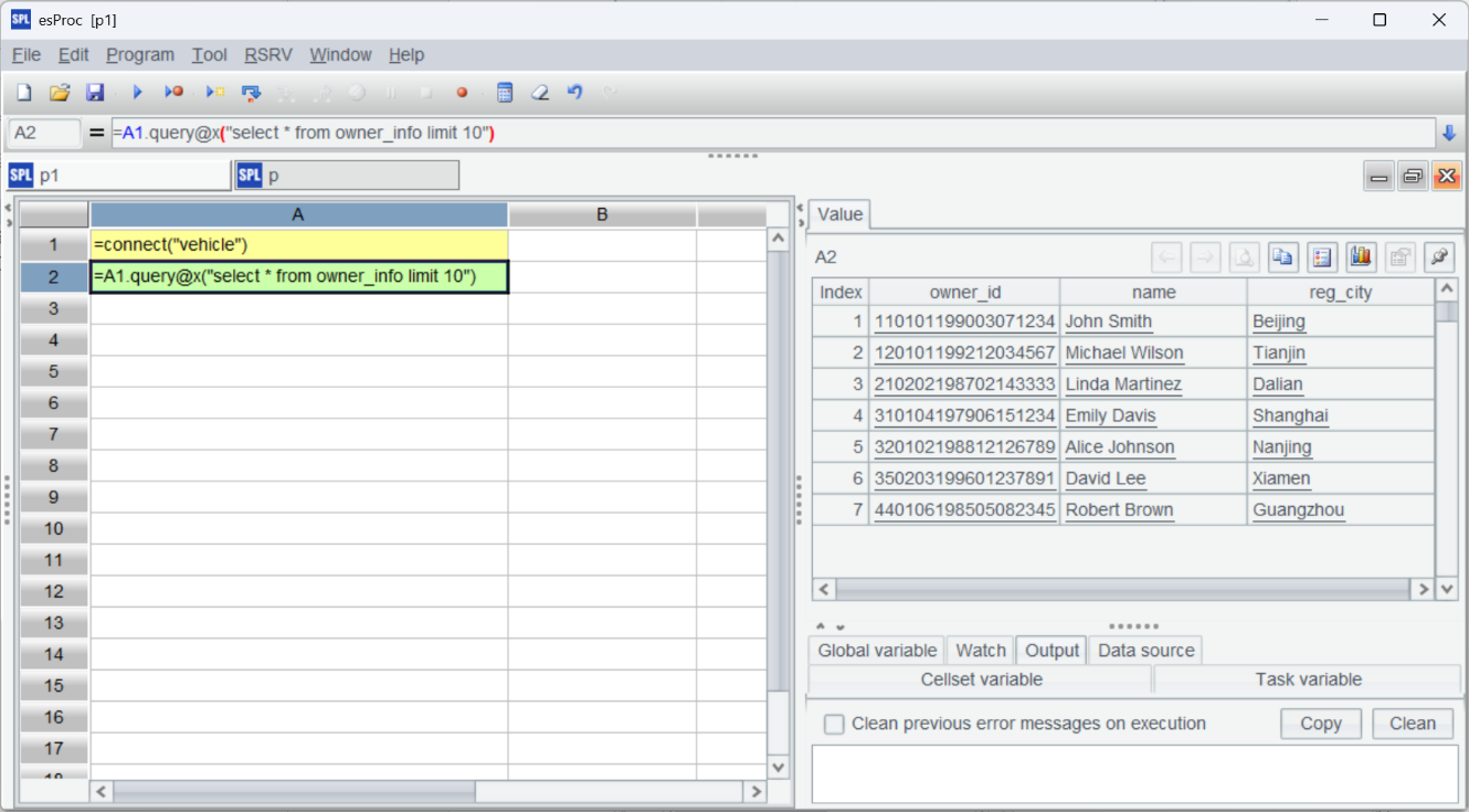 | 2 | =A1.query@x("select * from vehicle_master") |