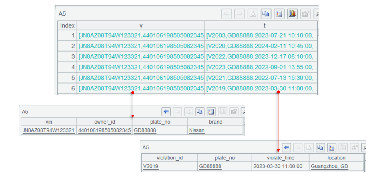 A5 uses the join function to associate the two tables based on plate_no. The association result is: