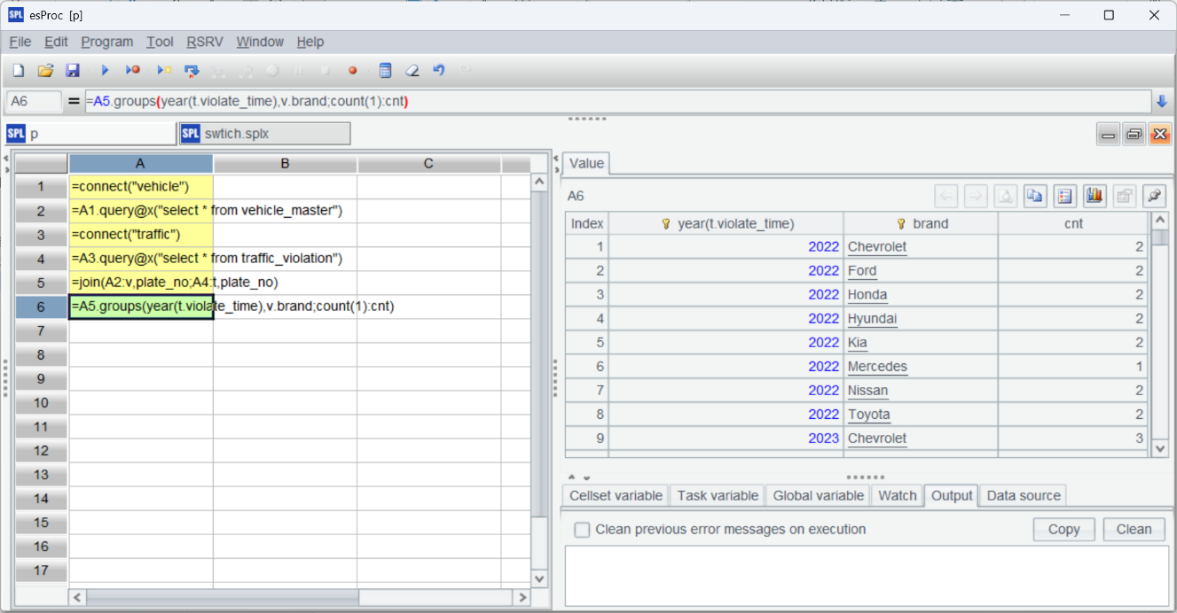 | 6 | =A5.groups(year(t.violate_time),v.brand;count(1):cnt) |