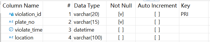 **A traffic management system (DB_Traffic) **stores vehicle traffic information. The structure of the traffic_violation table is as follows: