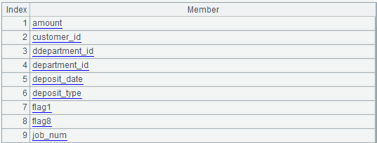 | 4 | =file("data/deposit.ctx").create(#customer_id,#deposit_id,deposit_date,amount,department_id,deposit_type;customer_id) | |