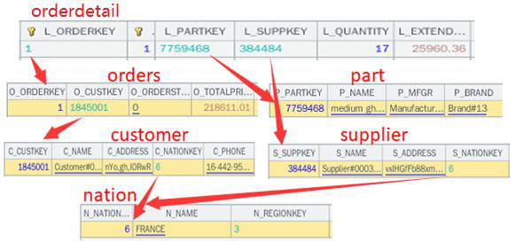 | 12 | >orderdetail.switch(L_ORDERKEY,orders;L_PARTKEY,part;L_SUPPKEY,supplier) |