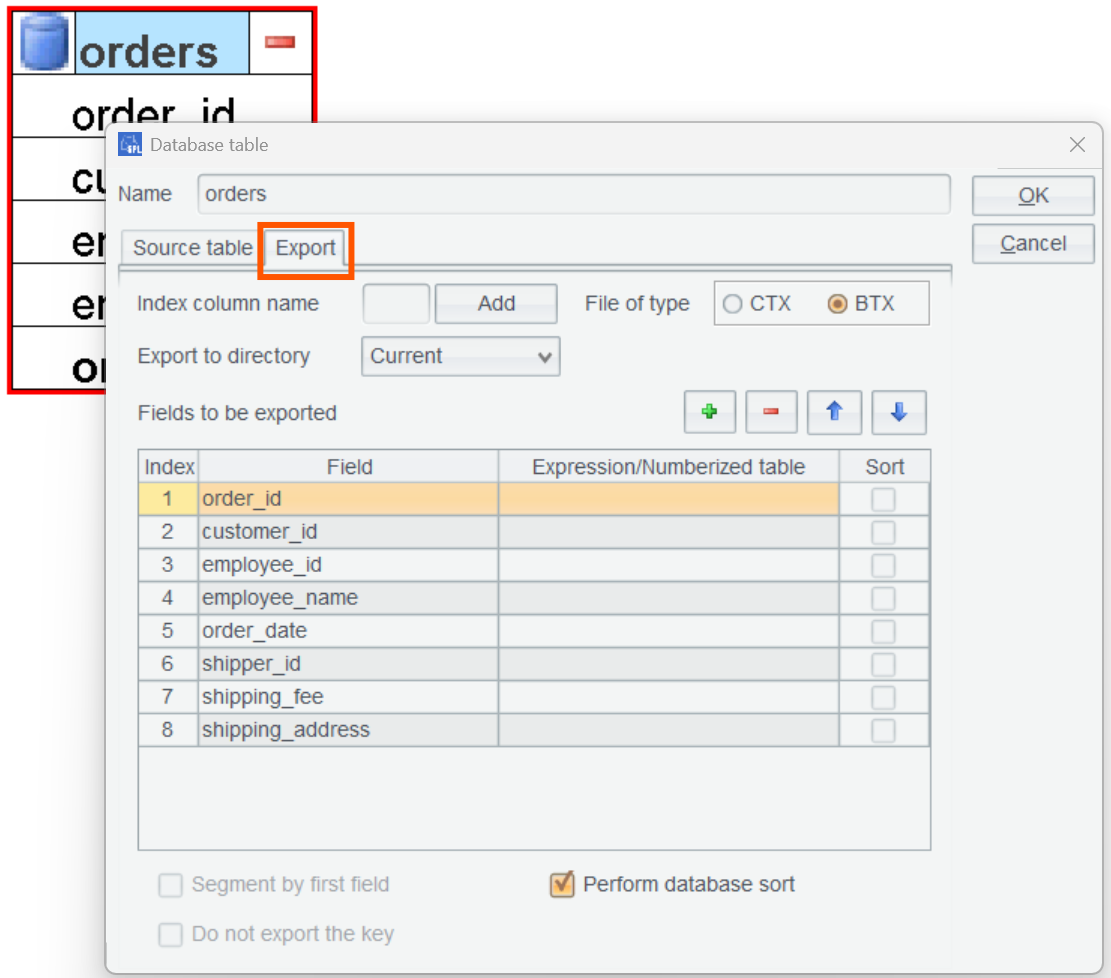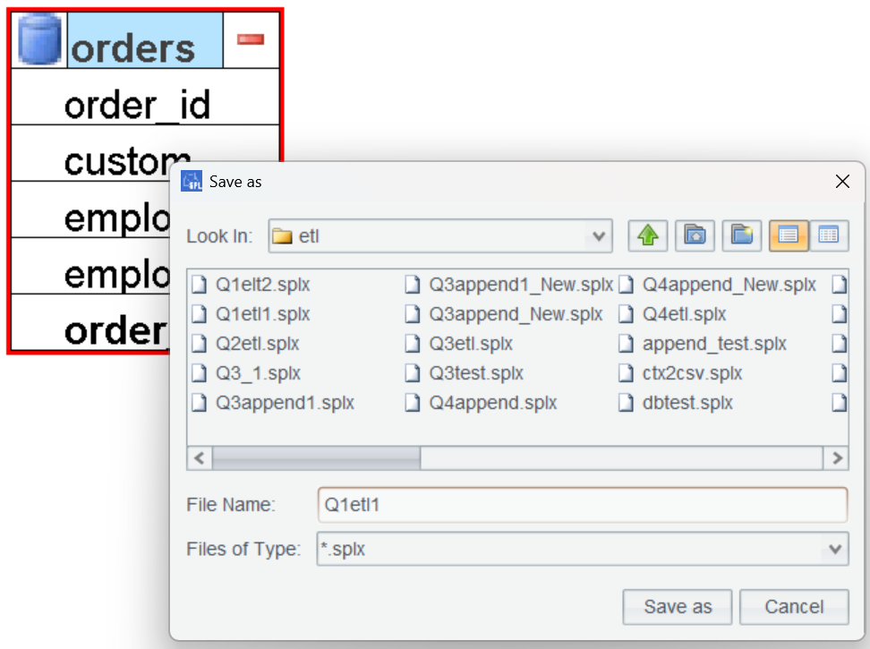 | 4 | =file(A2+"orders.ctx").create@y(order_id,customer_id,employee_id,employee_name,order_date,shipper_id,shipping_fee,shipping_address).append(A3).close() |