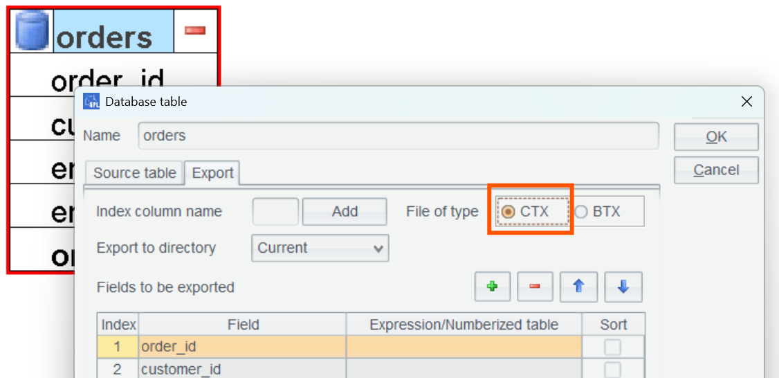 SPL example export code 4: Dump data to a column-wise stored composite table (CTX):