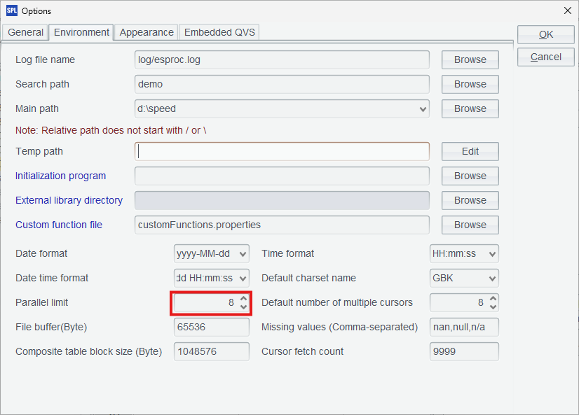 Continue to use the parallel processing to improve performance. Writing parallel code in SPL is convenient. You just need to set the number of parallel threads (here is 8), which should be consistent with the number of CPU cores.