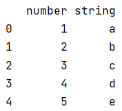 In this table, the “number” column is int64 type, and “string” column is object type.