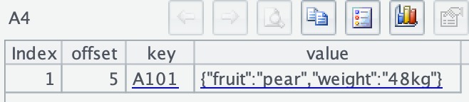 | 2 | {"fruit":"apple","weight":"35kg"} |