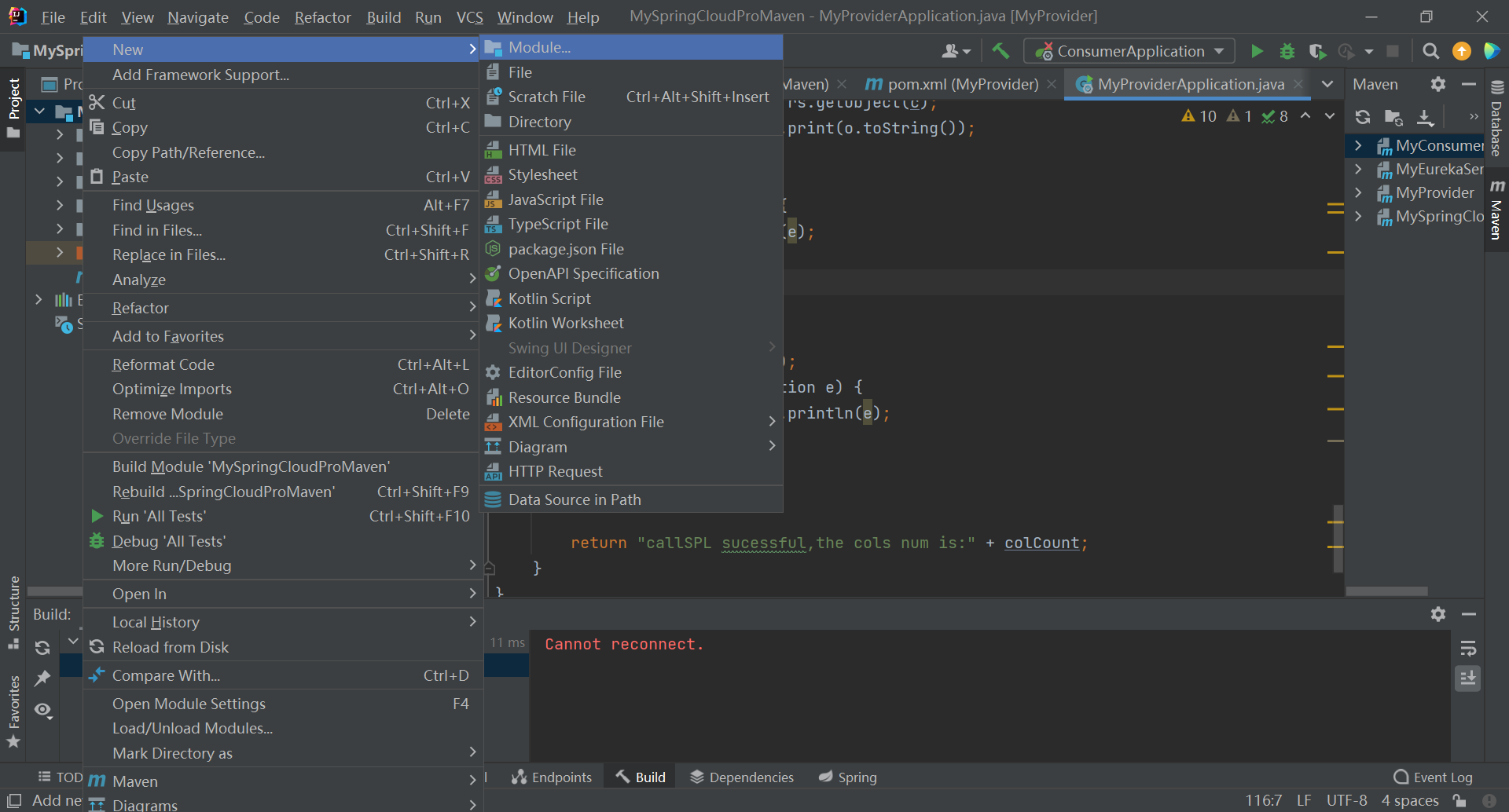The steps for creating a service provider are exactly the same as the steps for the registry, creating a new module, and selecting the Eureka Server, which will not be covered here.