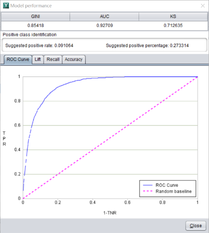 In addition to using numerical indicators to evaluate model performance, some graphics can be used to evaluate performance, such as lift curve.