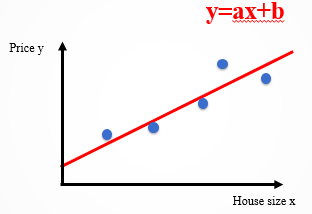 For example, there is a set of data on house size and sale price. The house size is the feature variable x, and the price is the target variable y. Now we hope to use the house size to predict the price.