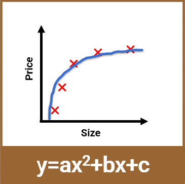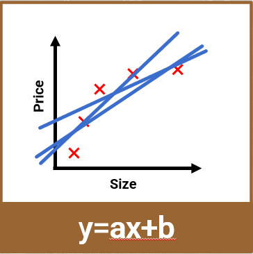 Through observation, we find that as the house size increases, the price generally rises in a linear trend. Therefore, we guess that there is a linear relationship between x and y.