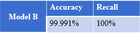 For example, although the accuracy of model B is somewhat low, the recall ratio is very high. It can identify all terrorists. However, while it is possible to misidentify a few normal people as terrorists, it is much better than missing the terrorists. Therefore, such a model makes sense.