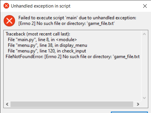 But even after adding the needed "game_file.txt' the result stays the same, because the game expects at least one save game: