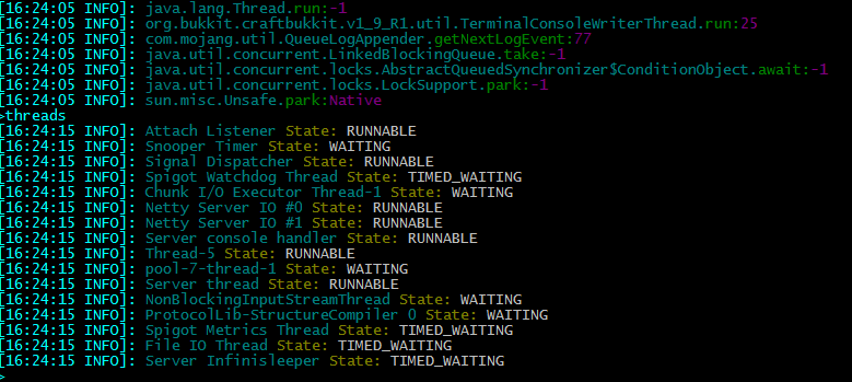 /stacktrace <threadName> - Gets the execution stacktrace of selected thread