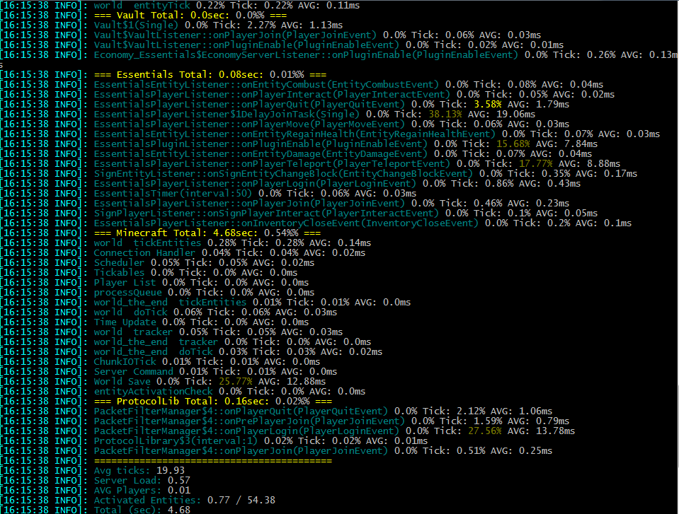 Furthermore, it is especially made for Minecraft itself. So you can also check your TPS (Ticks per second), player ping, server timings and so on.
