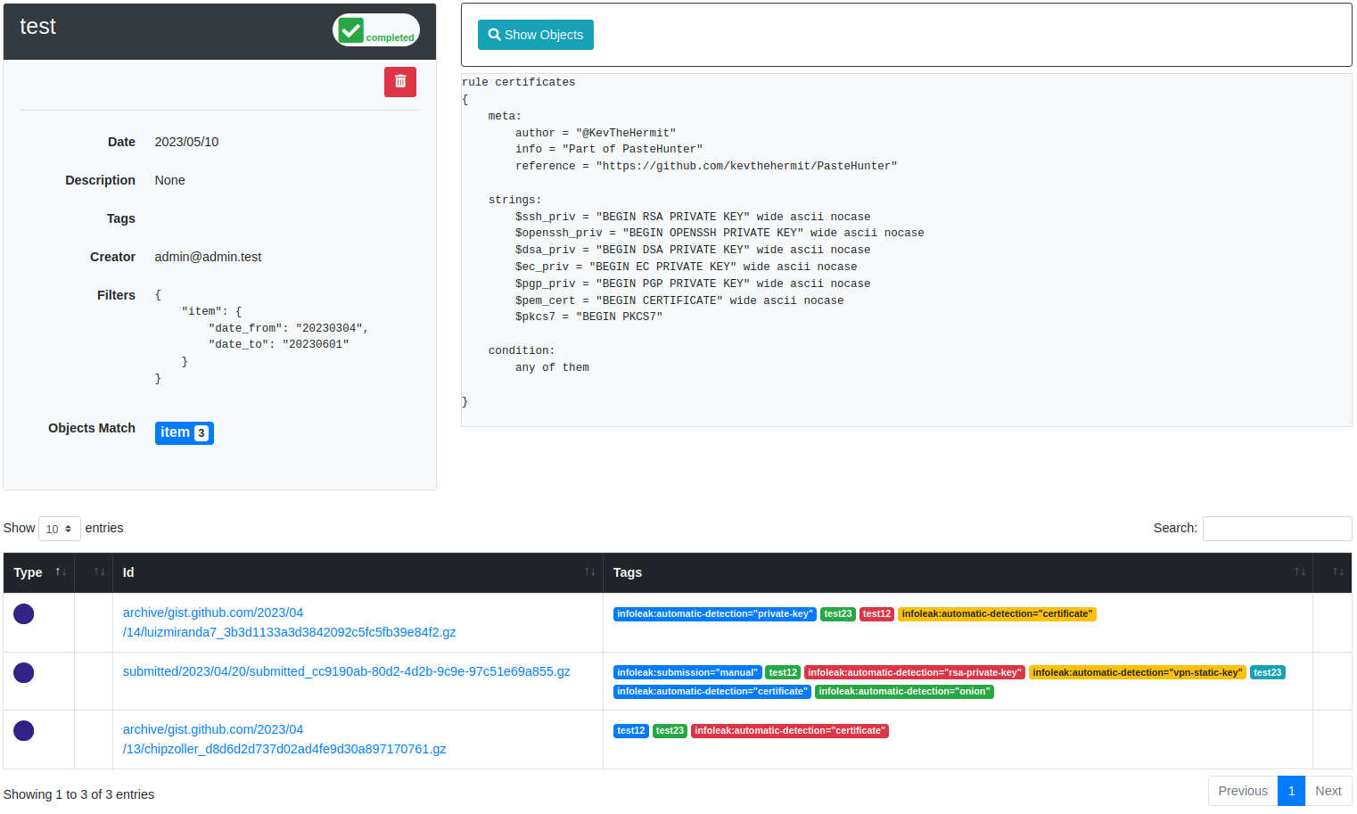 - Tagging Support: AIL objects now support tagging, allowing users to categorize and label extracted information for easier analysis and organization.