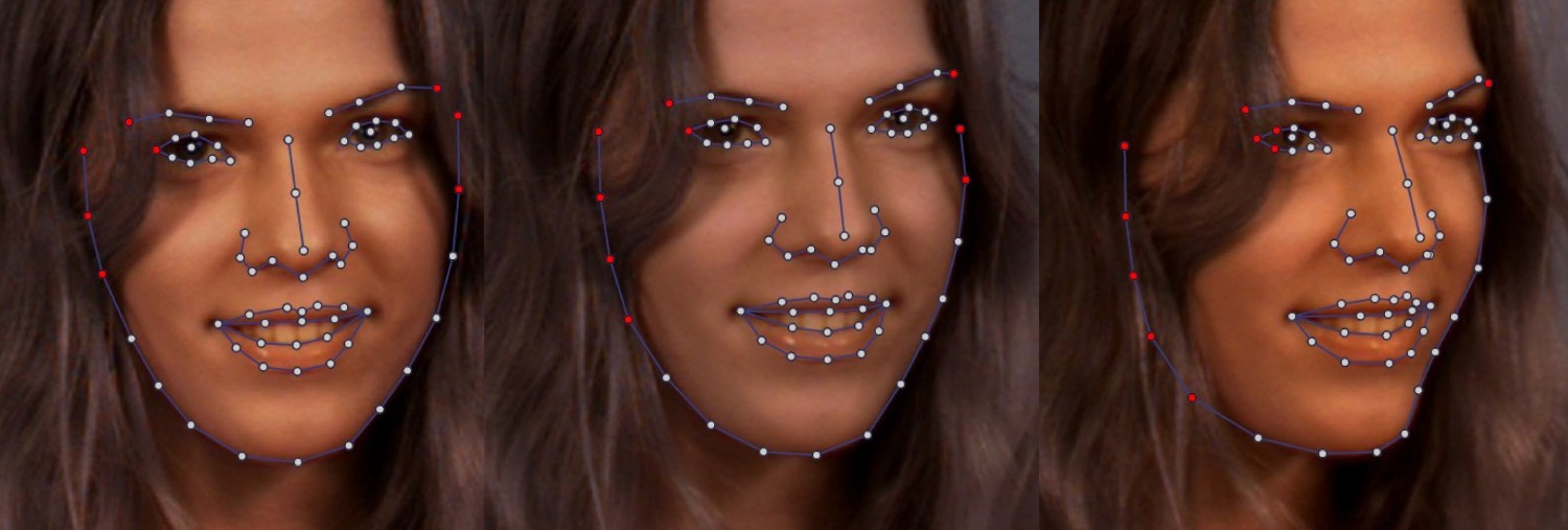 Points that are obstructed (by hair, clothes, etc.) should not be used for training the classifiers. To avoid this, hold down shift while clicking the points, so that the point turns red. This means that the point will be used only for creating the facial model, not the classifiers.