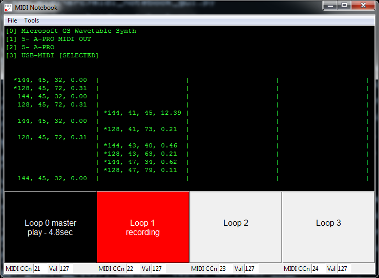 A prototypal MIDI monitor, looper, and recorder written in Python. Inspired by Boomerang Looper pedals for guitarists - except that you don't need a MIDI pedal.