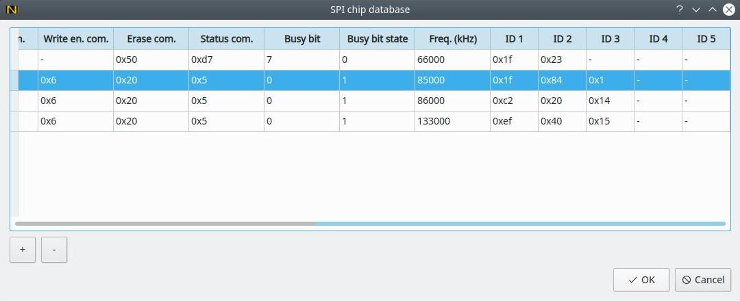 Open Settings - SPI chip database and add chip parameters from datasheet.