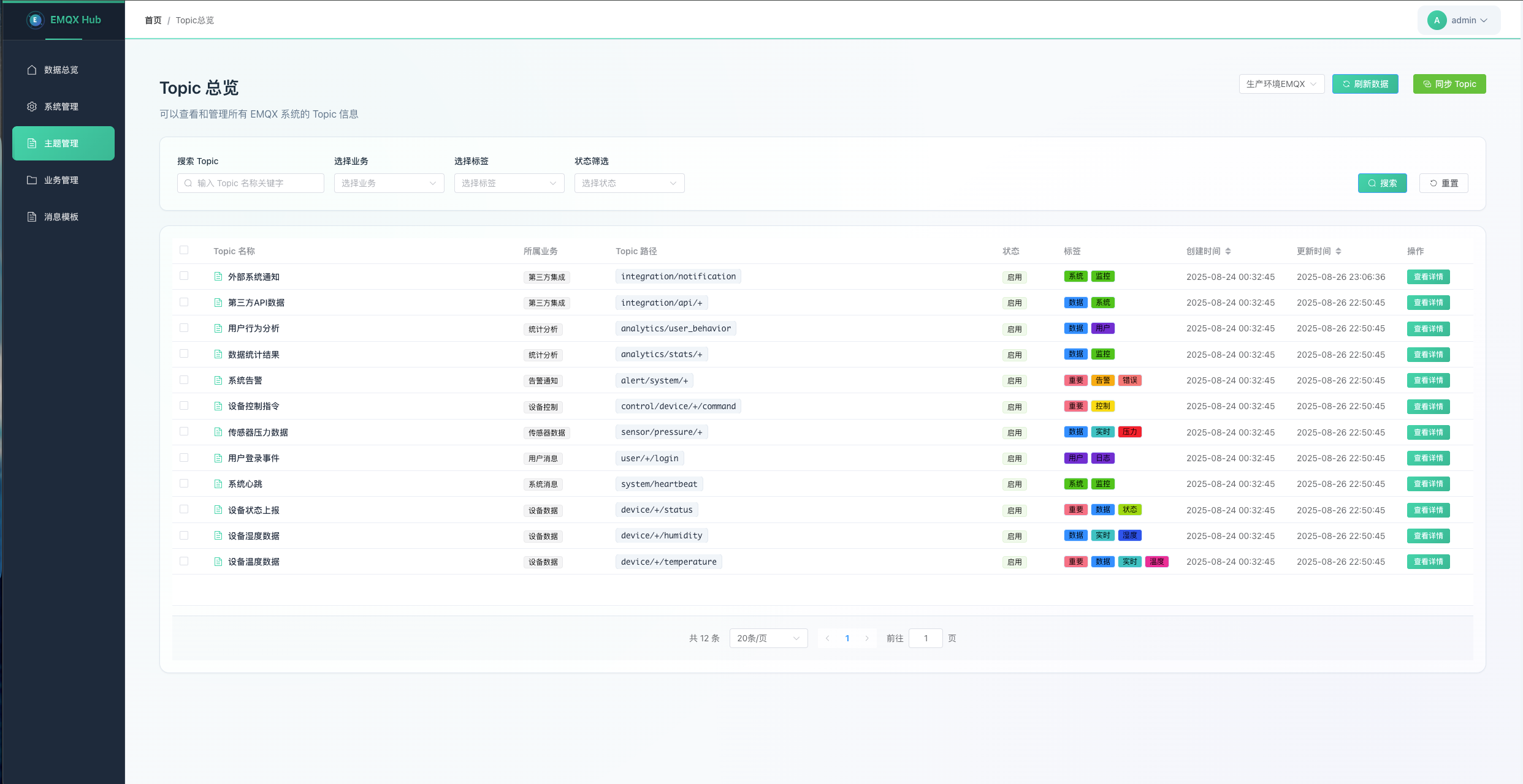 - Topic同步: 从EMQX系统自动同步Topic信息,支持增量更新