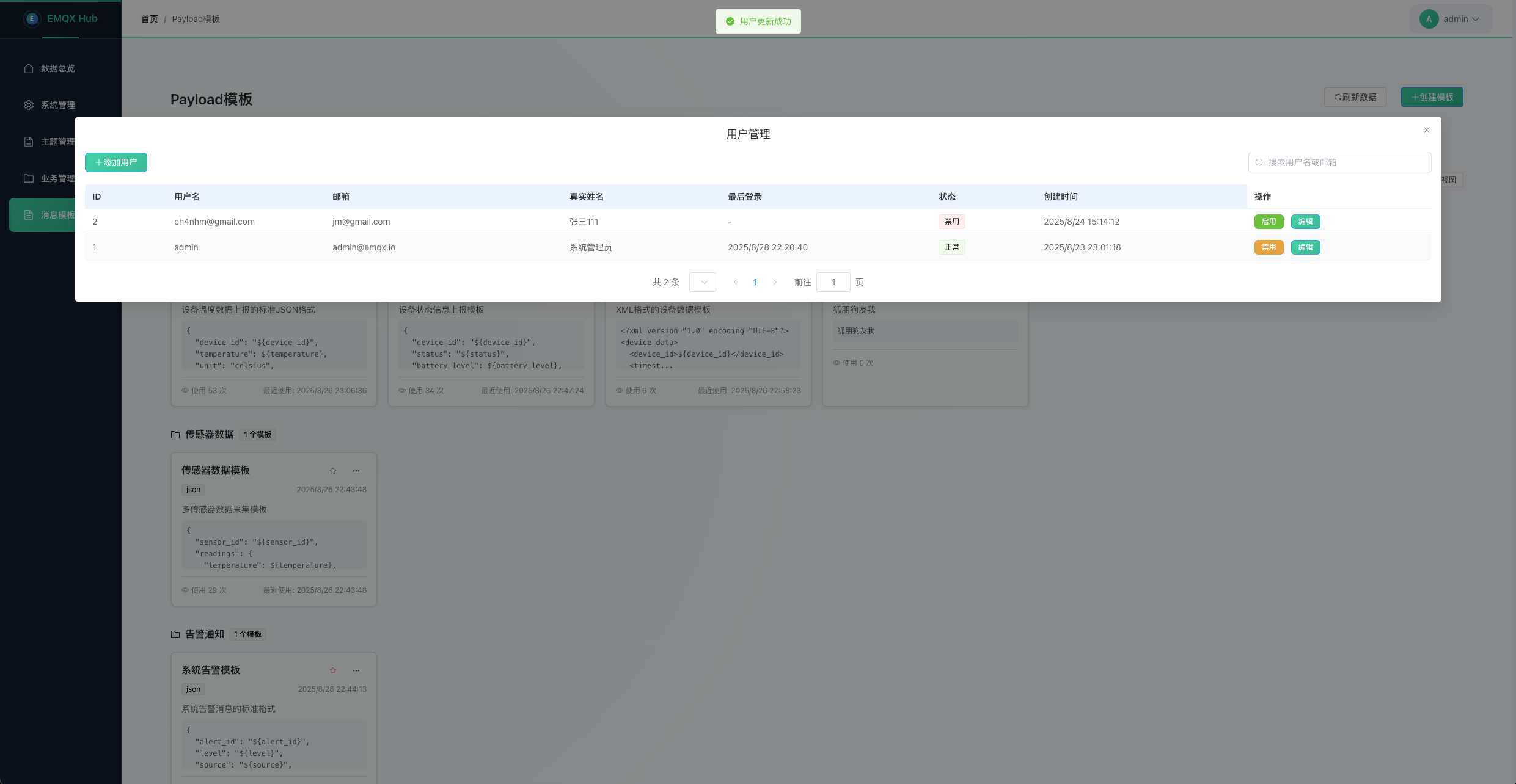 - 用户管理: 支持用户的创建、编辑、删除和状态管理