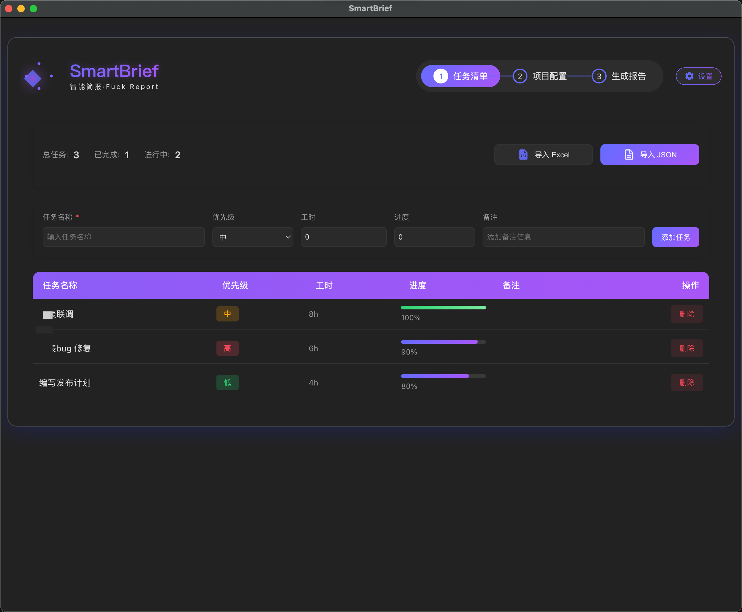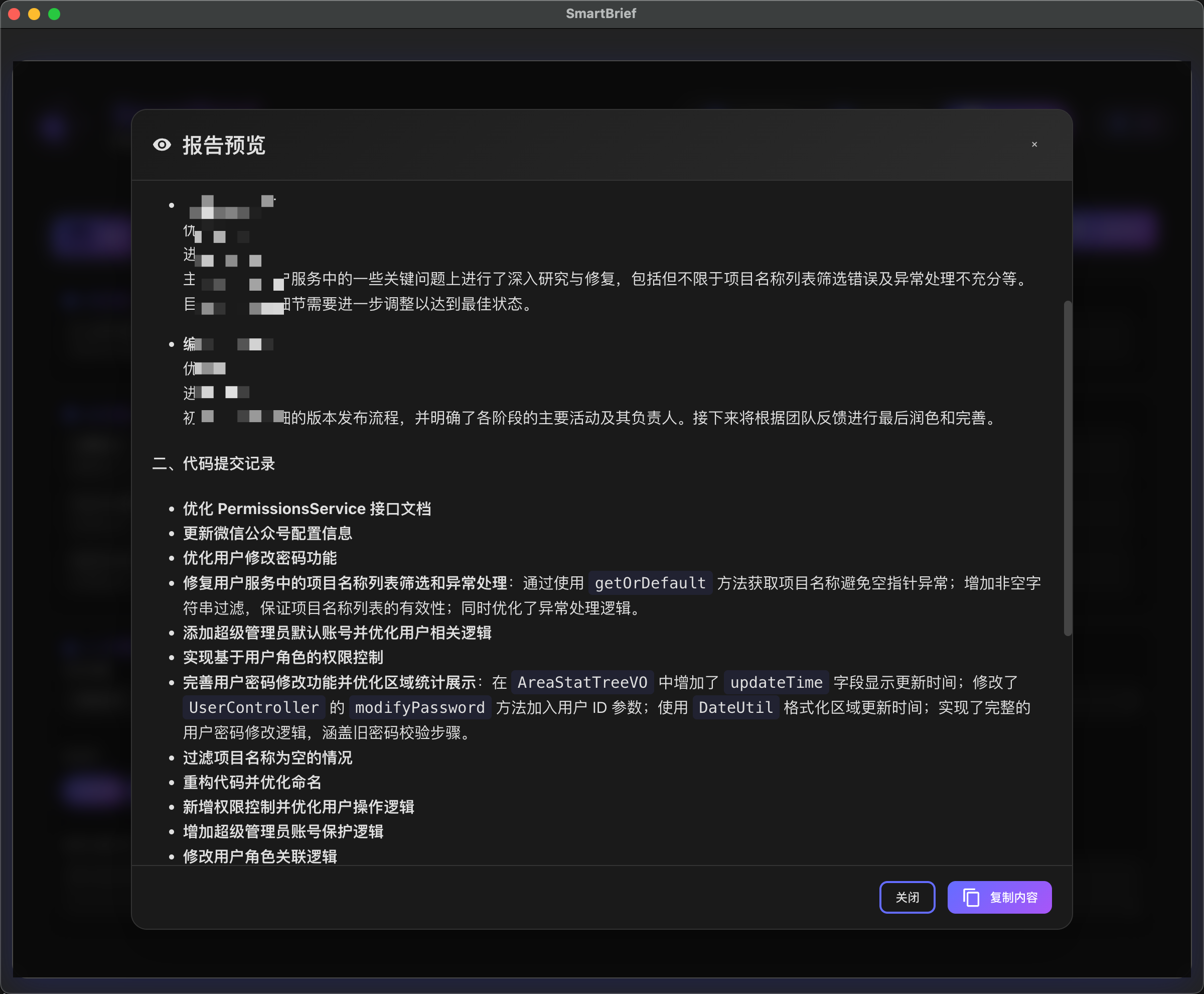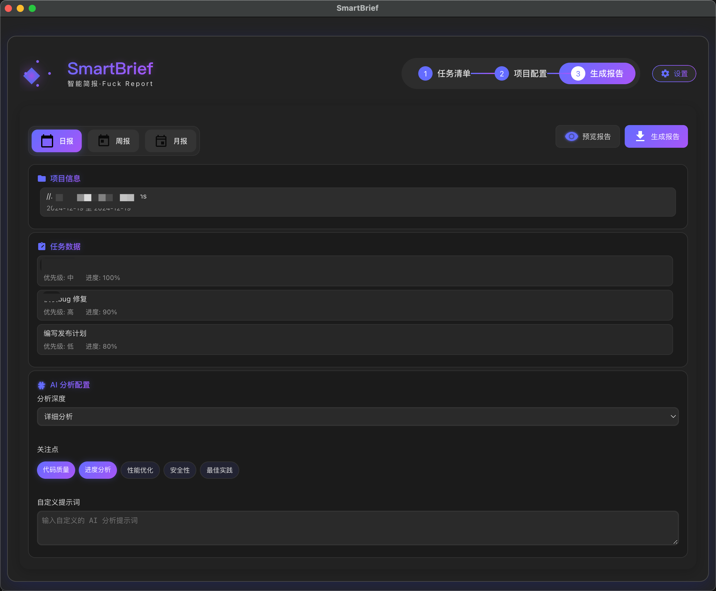 SmartBrief 是一款基于 AI 的智能工作报告生成桌面工具,可以自动分析项目代码提交记录和任务数据,快速生成日报、周报和月报。