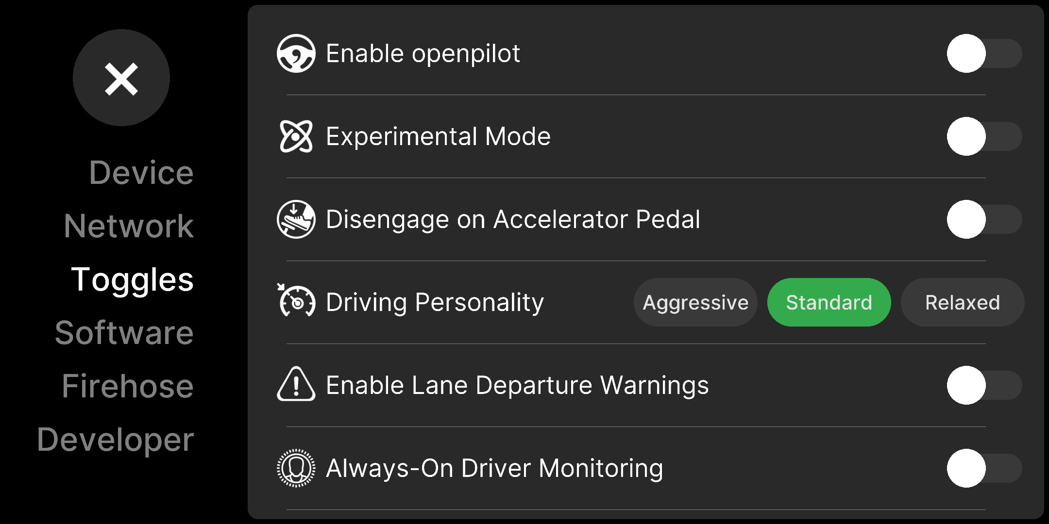 - Adds onroad test scenarios including engaged, disengaged, override, and wide camera modes