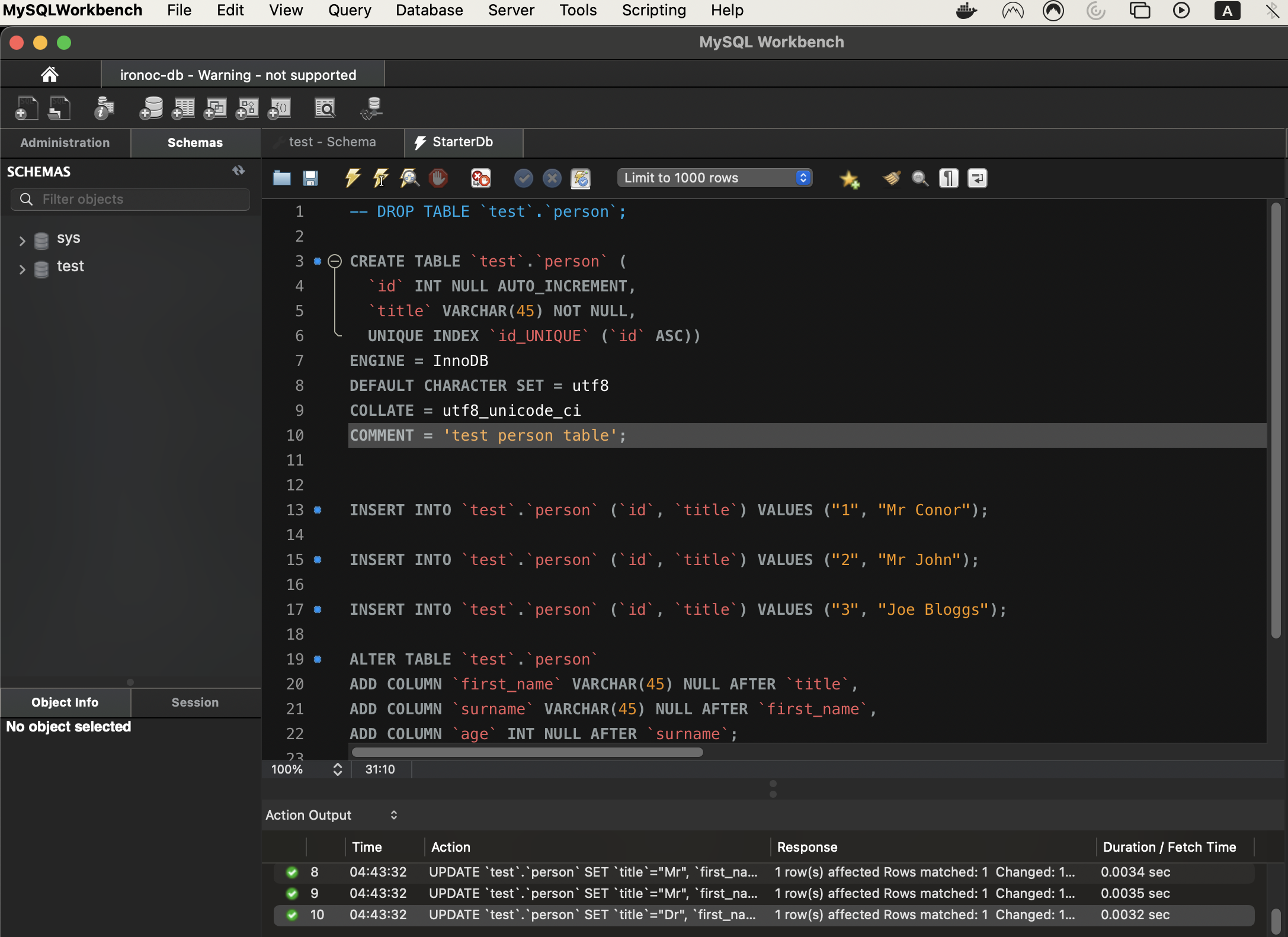 - Get IPv4Address from inspect cmd and test connection from MySql workbench with new host IP. Run StarterDb.sql.