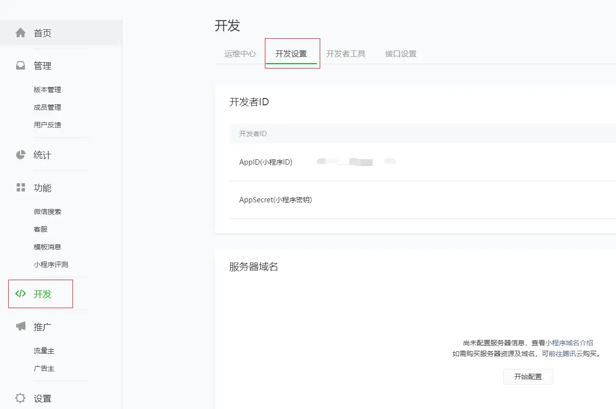 在完成注册后,切换到开发->开发设置,可以查看开发者ID。