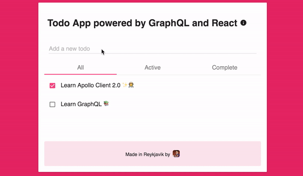 - Apollo Client 2.0 to communicate with GraphQL Server
