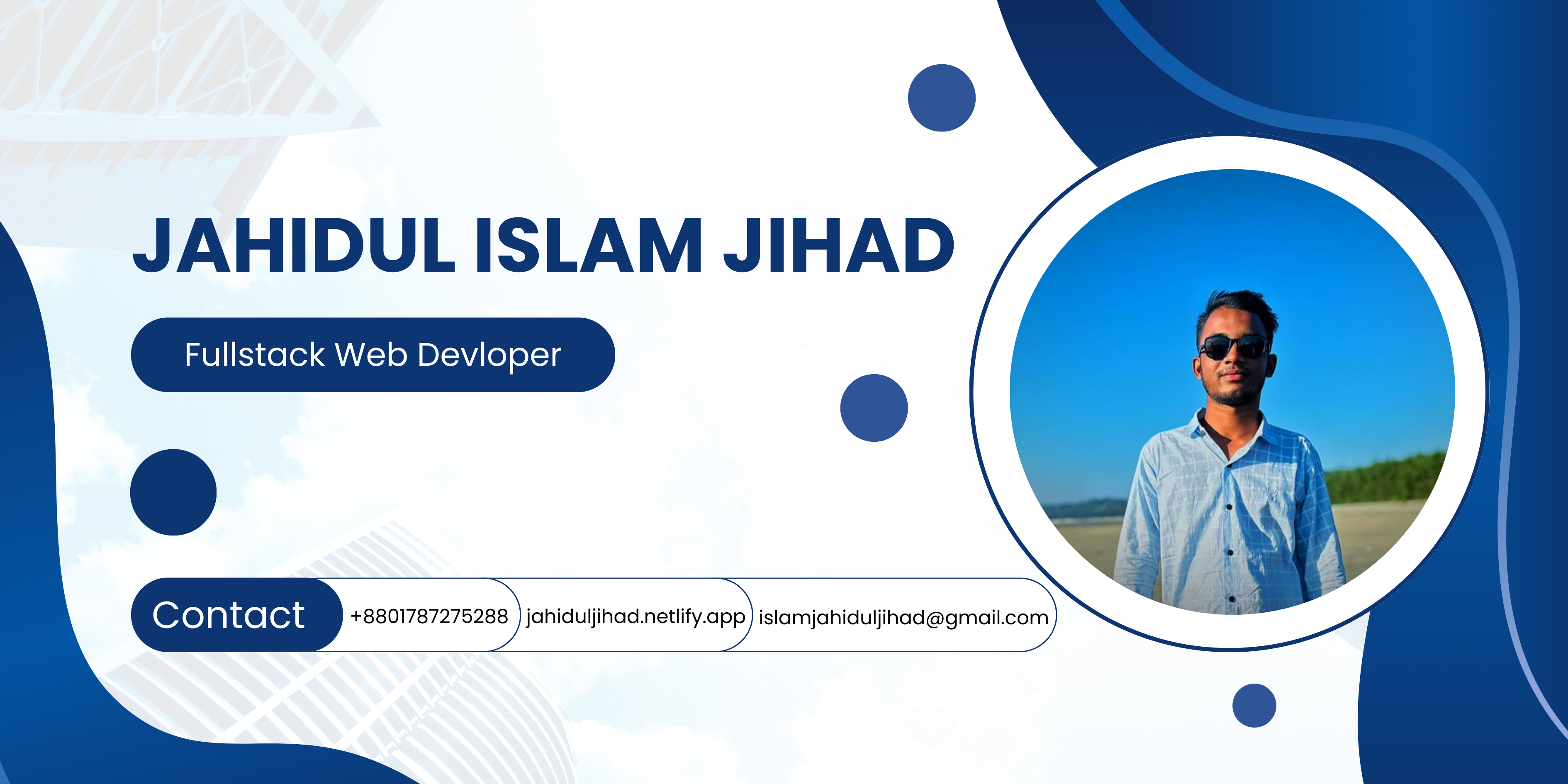Hello, Iβm Jahidul Islam Jihad. My core skill is based on HTML, CSS, JavaScript, and I love to do most of the things with React projects. I am skilled at MERN Stack. I have a strong passion for learning and implementing new web technologies and standards. Iβm currently studying computer engineering at Shyamoli Ideal Polytechnic Institute, Bangladesh.