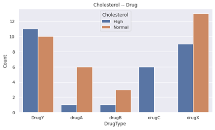 - Compared to the beginning, drugA and drugB is almost given to the people who have Normal cholesterol.