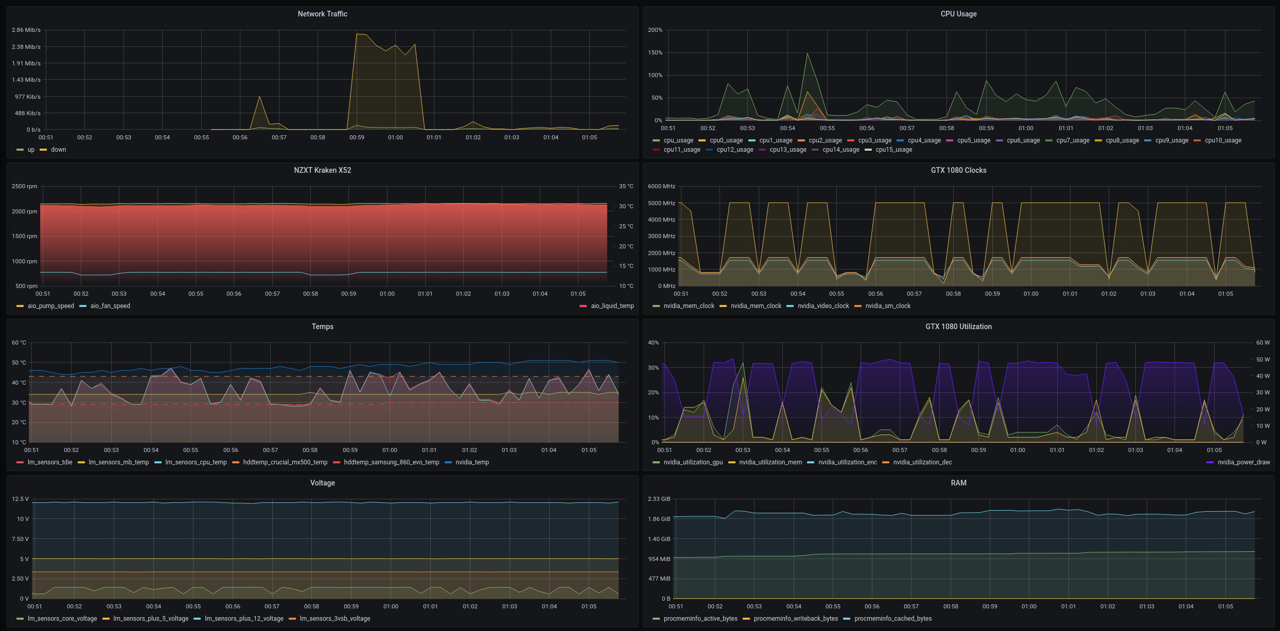 Prometheus metrics exporter to expose custom metrics from my desktop. I am using this project to learn Rust, Prometheus, and Grafana. Currently it exposes: