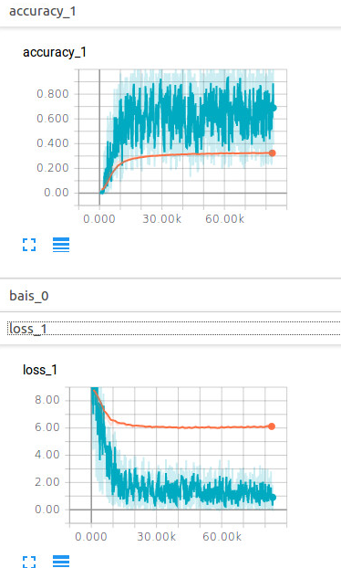 但是模型的仿真效果比较差,如下图所示,acc一直上不去,而且loss维持在10附近居高不下。到了训练后期