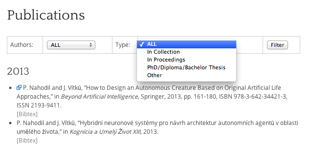 - Jaroslav Vítků: Filtering by author and type; form to filter publications