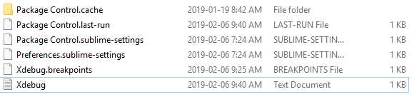 In the Packages/User/Xdebug all I see is: