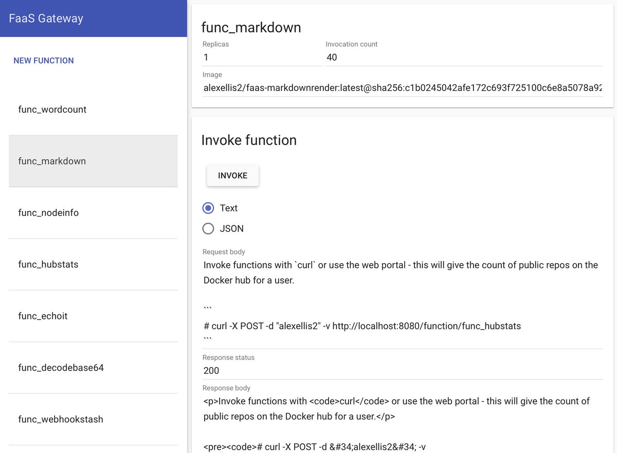 - Your API Gateway will scale functions according to demand by altering the service replica count in the Docker Swarm or Kubernetes API.