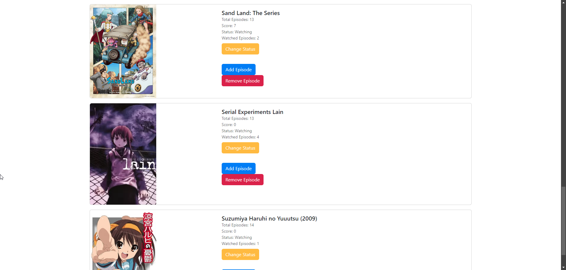 Manage Lists: On the list management screen, you can view your animes and add watched episodes.