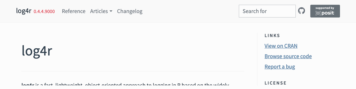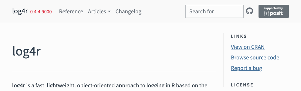This PR adds the "Supported by Posit" badge to the log4r website.