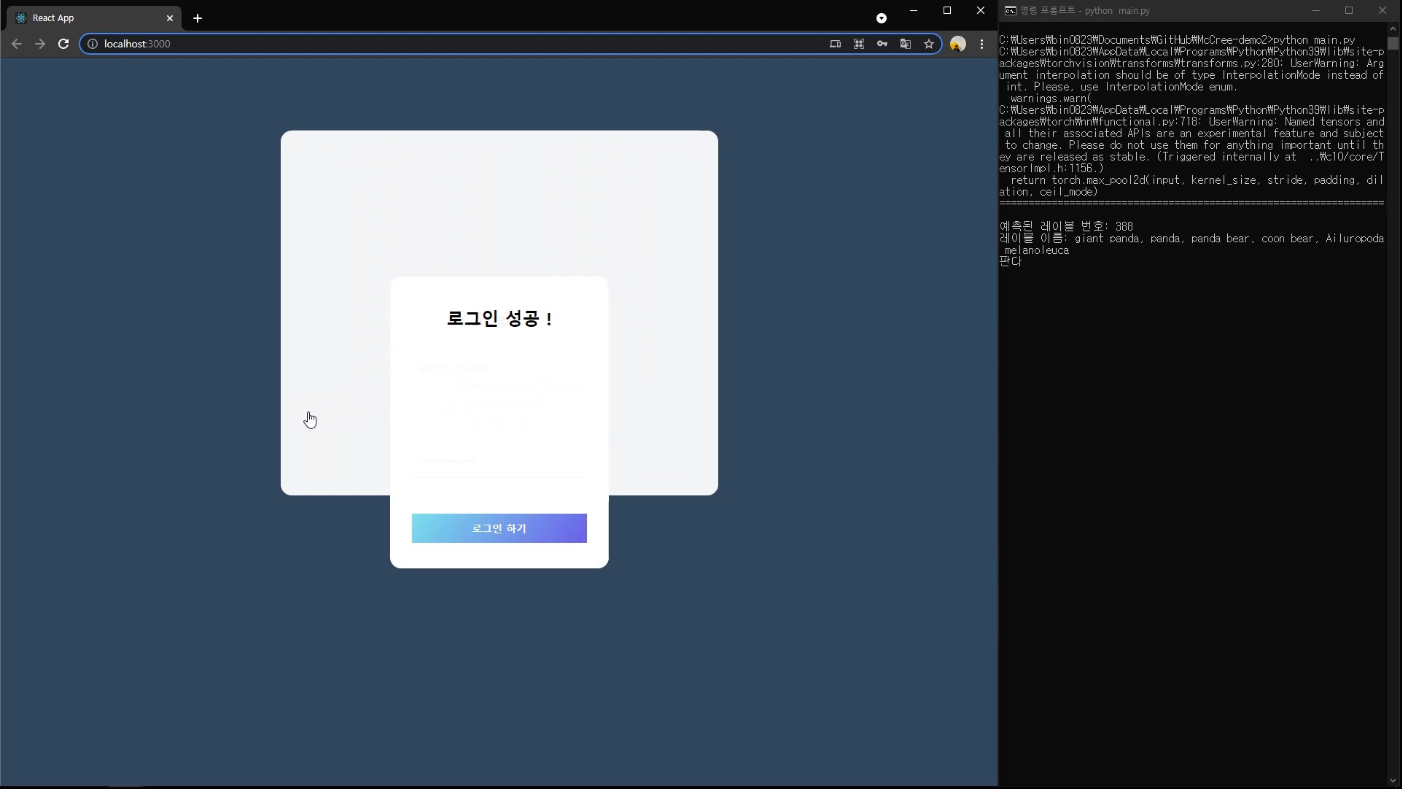 main.py를 실행시키면 McCree-web api 테스트 페이지에서 이미지를 받아 image classification를 진행합니다.